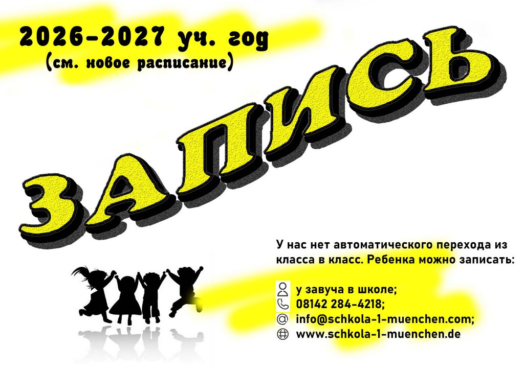 Школа №1 основана в 2005 году. Она начинала свою историю со ста учеников. Сейчас их число составляет от 280 до 320 человек. Здесь учатся дети не только из Мюнхена и пригорода. Приезжают также ребята из Аугсбурга, Регенсбурга, Фрайзинга, Ландсхута, Гармиш-Партенкирхена, Мурнау, Розенхайма, Инсбрука (Австрия) и пр.
